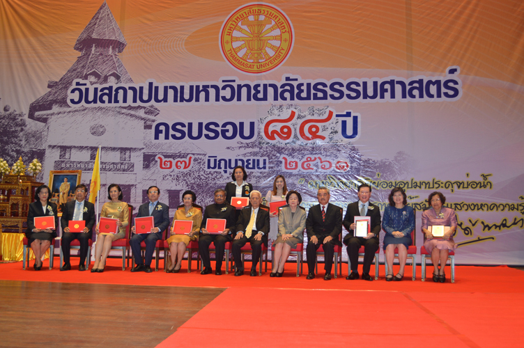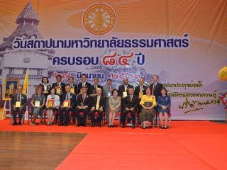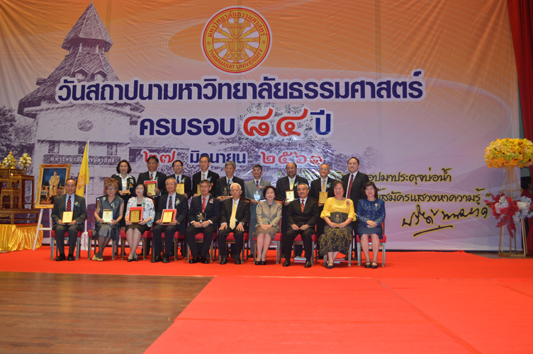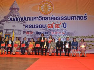 On 27 June 2018, Thammasat University organized an event commemorating 84 years since the University’s founding. On this occasion, the University presented the honorary award (plate) of Special Merit to Asst. Prof. Dr. Chaweewan Prachuabmoh and the 2017 Fellow of the University Award for Social Sciences to Prof. Dr. Samerchai Poolsuwan. On the same day, Prof. Dr. Samerchai Poolsuwan presented a lecture on “Theravada in Southeast Asia, the Second Millennium after Christianity: Aspects from New Evidence from Art History” from 10.30 – 12 noon at the Professor Sanya Thammasak Meeting Room, Thammasat, Tha Prachan.